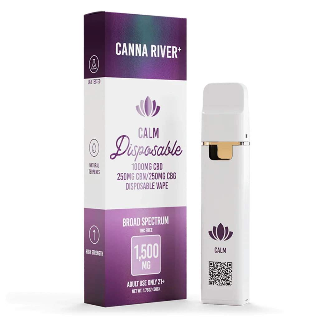 Find your moment of peace with the Canna River Calm Disposable Vape. This sleek, ready-to-use vape brings together Broad Spectrum CBD, CBN, and CBG in perfect harmonyβwithout any THC. Each puff offers gentle relaxation and mental clarity that feels natural and refreshing.