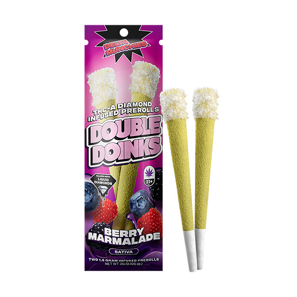 The Delta Munchies 2g THCA Diamond Double Doinks aren’t your typical prerolls—they’re handcrafted masterpieces. Each one packs ultra-refined THCA diamonds for unmatched potency. The flower gets glazed in liquid diamonds and rolled in a rich coat of kief, creating a smooth, flavorful experience that lasts.
