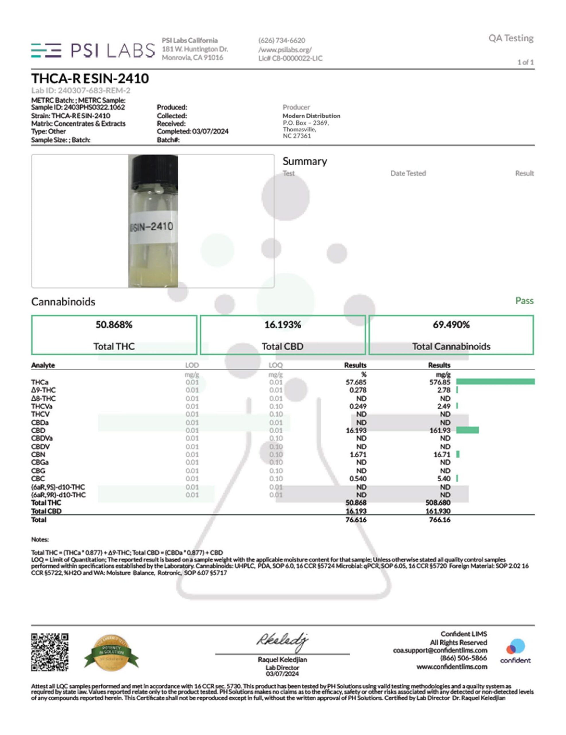 Total Cannabinoids – 69.49%