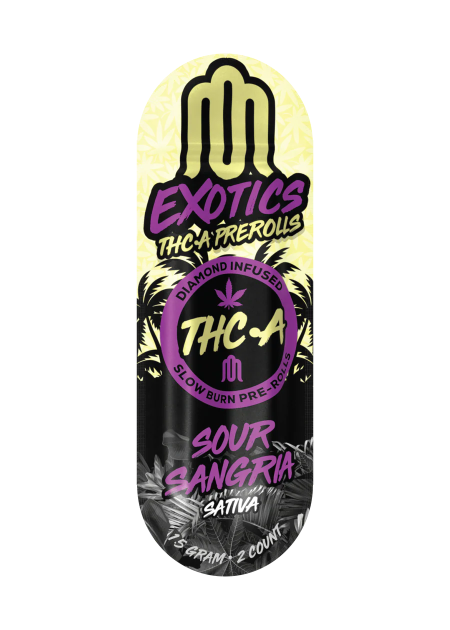 Exotics THCA Diamond Infused PreRolls take hemp sessions to a refined level. First, the high-terpene flower delivers aroma and flavor that pop. Then, THCA diamonds provide potent effects when heated, giving a satisfying head and body experience. Each pre-roll burns slowly and evenly, so you can enjoy the full 1.5g of premium hemp.