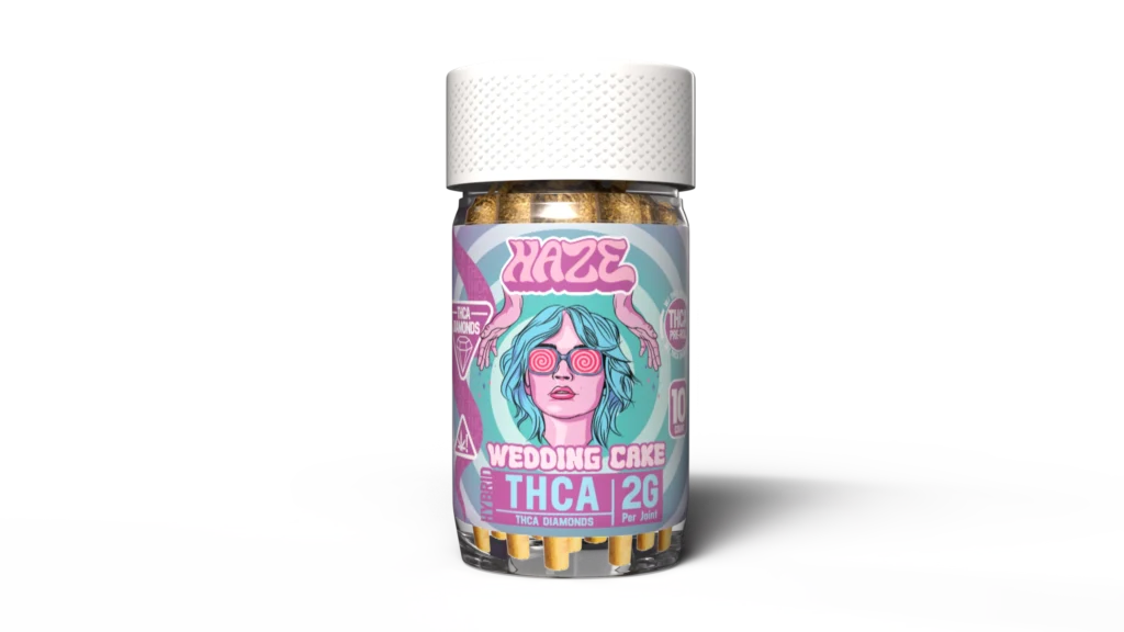 Treat yourself to the perfect hybrid experience with HAZE Wedding Cake Hybrid Pre-Rolls – 2g Joints (10ct). These pre-rolls pack a flavorful punch with premium indoor hemp flower infused with THCA diamonds. The result? Potency you can feel, balanced effects, and smooth, aromatic smoke.