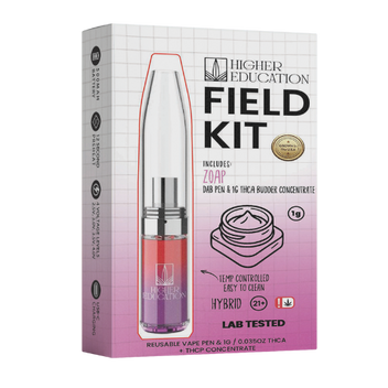 The Higher Education Dab Field Kit is designed to give you a clean, smooth, and flavorful dab experience in a simple all-in-one bundle. This kit combines a portable, easy-to-use dab pen with a full 1 gram premium concentrate, making it a great choice for both first-time users and experienced concentrate lovers.