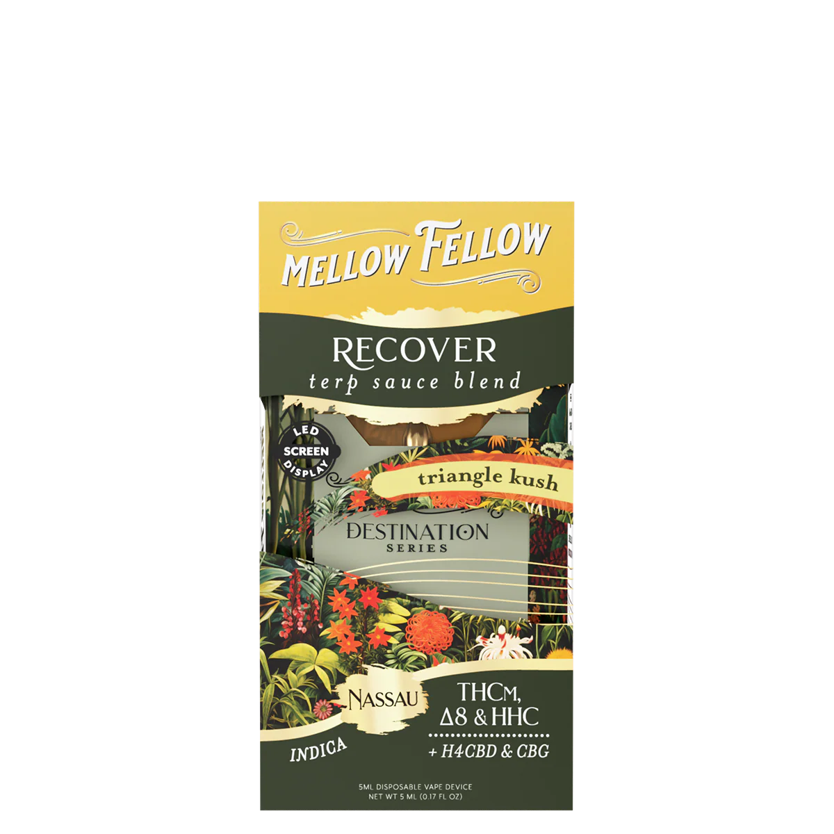 The Mellow Fellow Recover Blend Terp Sauce 5ml Disposable Vape Triangle Kush Indica is your reset button in a device. With spicy lemon and earthy wood notes, Triangle Kush delivers bold flavor and a soothing finish. Each puff wraps you in a warm body high that helps release stress and tension.