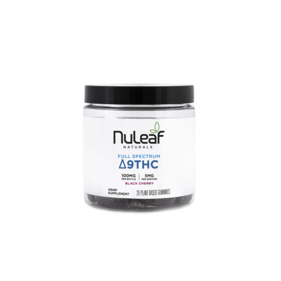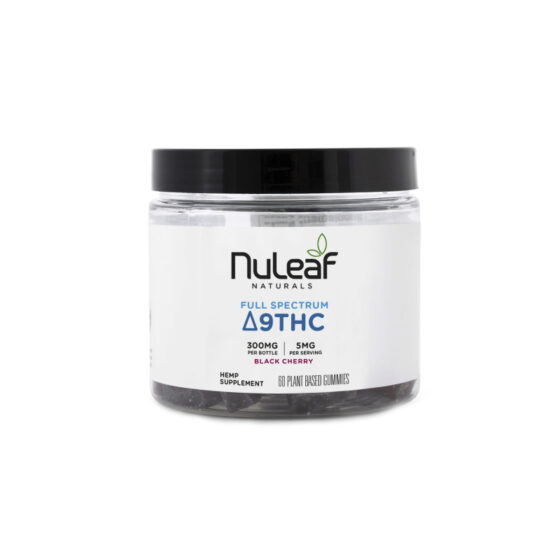 NuLeaf Naturals Full Spectrum Delta 9 THC Gummies Black Cherry offer a convenient and delicious way to experience the natural benefits of Delta 9 THC. Each gummy contains 5mg of THC extracted from full spectrum hemp, allowing the entourage effect to work in harmony with your body.