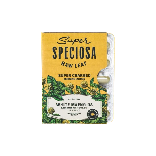 Start your day with the vibrant energy and enhanced focus provided by Super Speciosa’s White Maeng Da On-The-Go Pack (10 counts). Designed for those who are always on the move, these kratom capsules are perfect for boosting your sense of well-being and preparing you to take on the day with confidence.